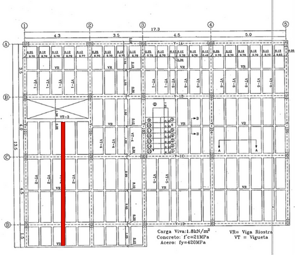 Se presenta a continuación el diseño a flexión en el centro de cada luz y en cada apoyo de la vigueta considerándola "simplemente armada, como se observa en la siguiente figura: